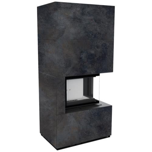 Каминокомплект Kratki Pro Floki в облицовке Ossido Nero, угловое стекло справа (светлая футеровка)