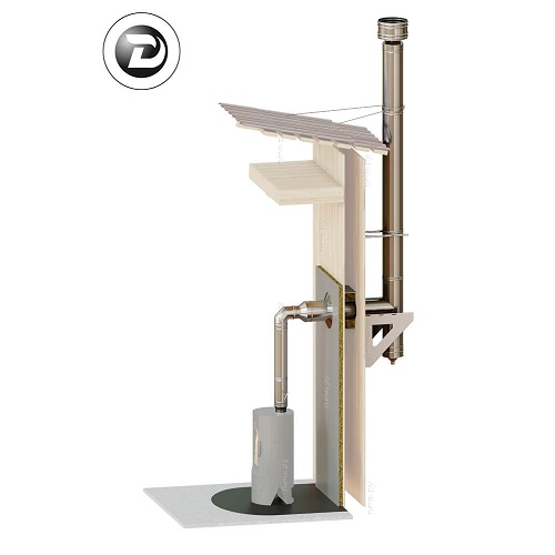 Инструкции, чертежи, документы - Комплект дымохода Дымок, нержсталь, проход через стену, верхний выход