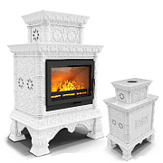 Готовый камин КимрПечь Кострома двухъярусный центральный с топкой Астов МЛ 700 (белый)