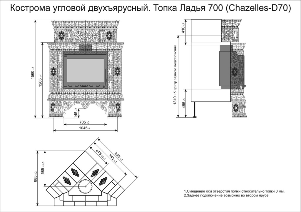 Инструкции, чертежи, документы - Готовый камин КимрПечь Кострома двухъярусный угловой с топкой Ладья 700