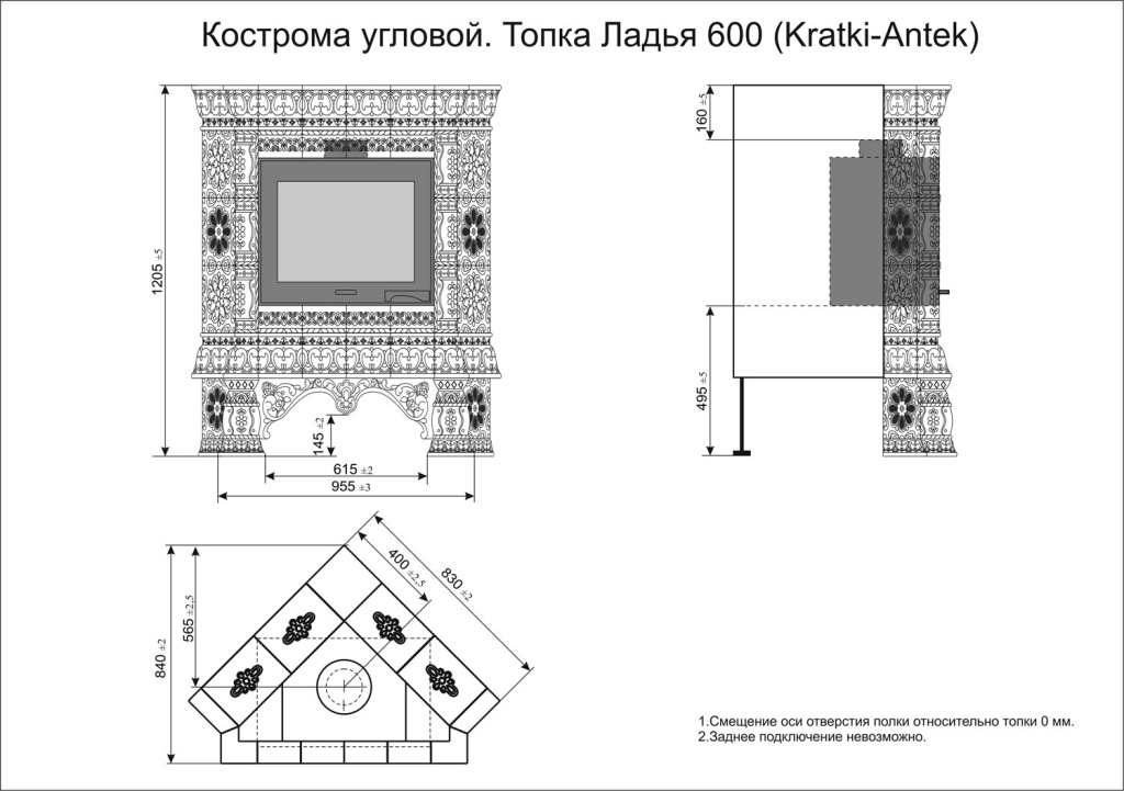 Готовый камин КимрПечь Кострома угловой с топкой Ладья 600 (белый)