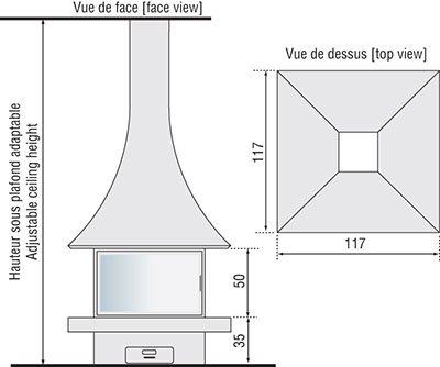 Готовый камин Bordelet Julietta 985 центральный со стеклом (труба 2.5 м)