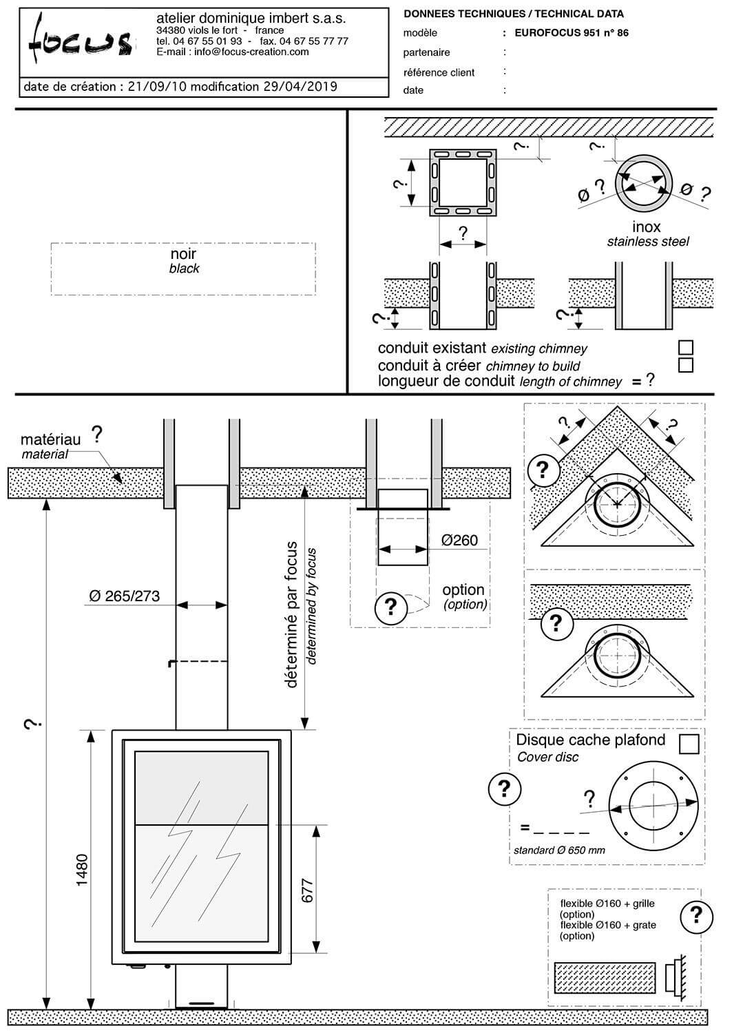 Инструкции, чертежи, документы - Готовый камин Focus Eurofocus 951 фиксированный