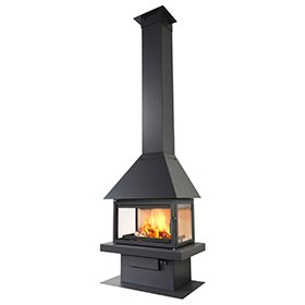 Для более полного обзора на горящее пламя или тлеющие дрова камин имеет тройное остекление. Имеет два жаропрочных стекла по бокам и широкую фронтальную дверцу с отличным обзором. Стекла – надежны, так как изготовлены из стеклокерамики, выдерживающей температуру до 750*C. Сама же дверка надежно запирается, плотно прилегая к раме камина.