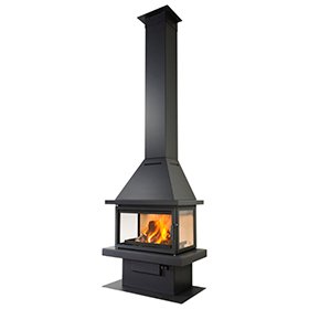 Для более полного обзора на горящее пламя или тлеющие дрова камин имеет тройное остекление. Имеет два жаропрочных стекла по бокам и широкую фронтальную дверцу с отличным обзором. Стекла – надежны, так как изготовлены из стеклокерамики, выдерживающей температуру до 750*C. Сама же дверка надежно запирается, плотно прилегая к раме камина.