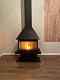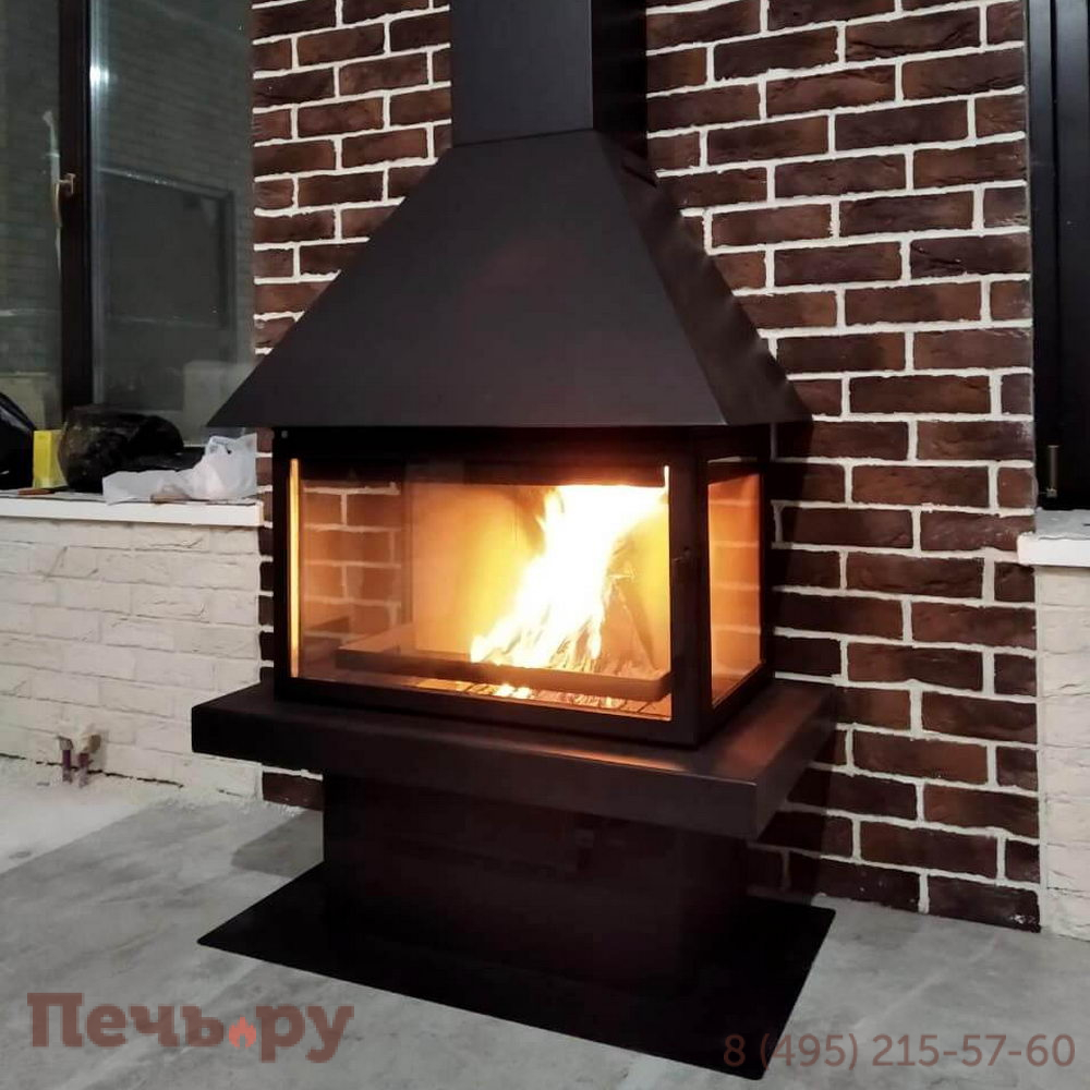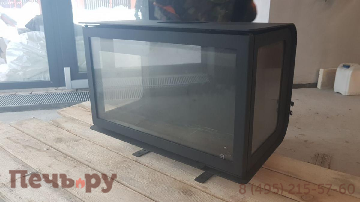 Для более полного обзора на горящее пламя или тлеющие дрова камин имеет тройное остекление. Имеет два жаропрочных стекла по бокам и широкую фронтальную дверцу с отличным обзором. Стекла – надежны, так как изготовлены из стеклокерамики, выдерживающей температуру до 750*C. Сама же дверка надежно запирается, плотно прилегая к раме камина.