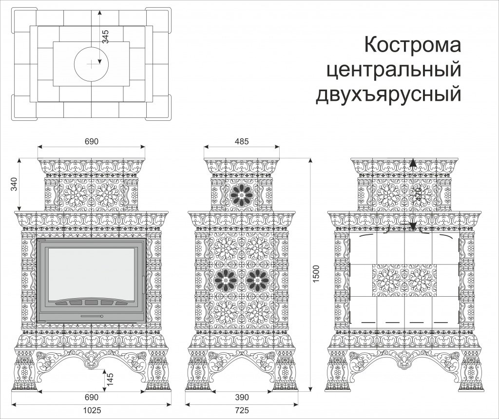 Инструкции, чертежи, документы - Облицовка камина КимрПечь Кострома центральный-двухъярусный для топок 600