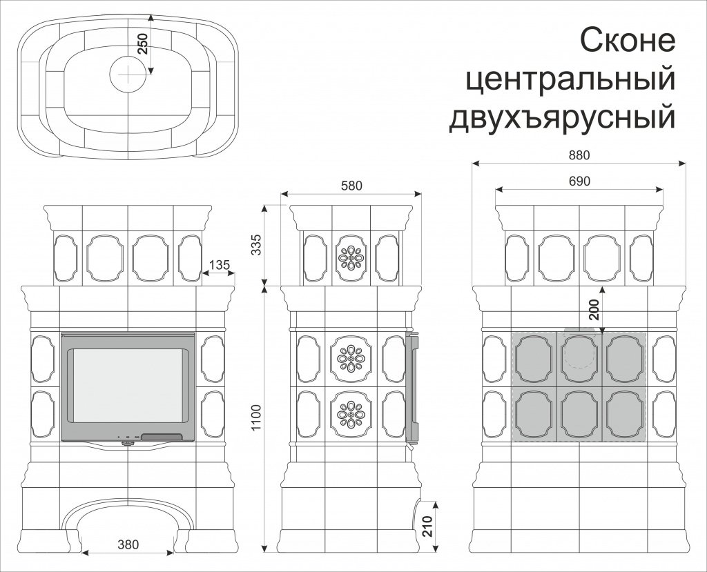 Облицовка камина КимрПечь Сконе центральный-двухъярусный (белый)