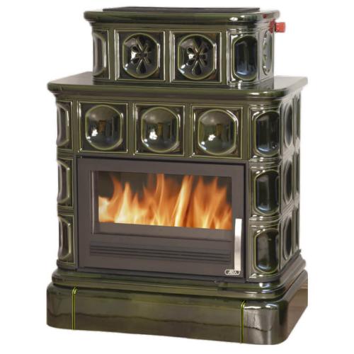 Кафельная печь ABX Karelie P (10кВт в воду), кафельный цоколь, вставка стальная