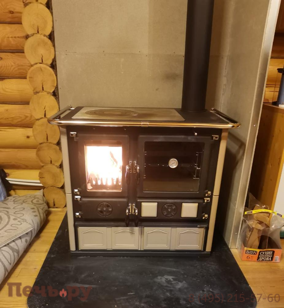 Печь из чугуна, большая варочная поверхность, система вторичного дожига.