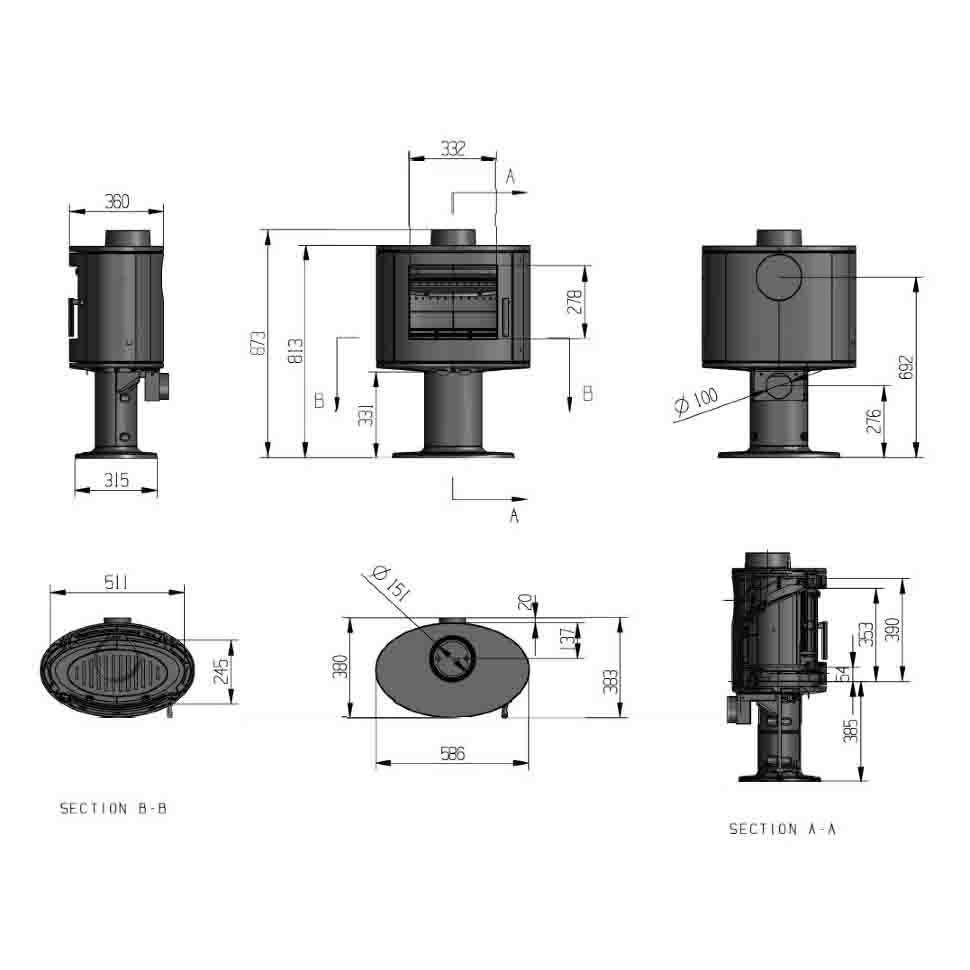 - Диаметр дымохода, мм 150