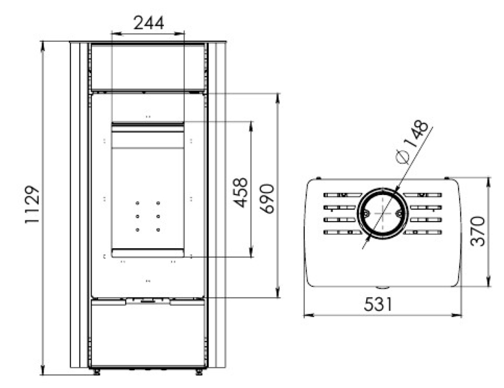 - Диаметр дымохода, мм 150