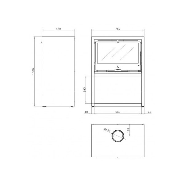 высота: 1000 мм, ширина: 760 мм, глубина: 470 мм.