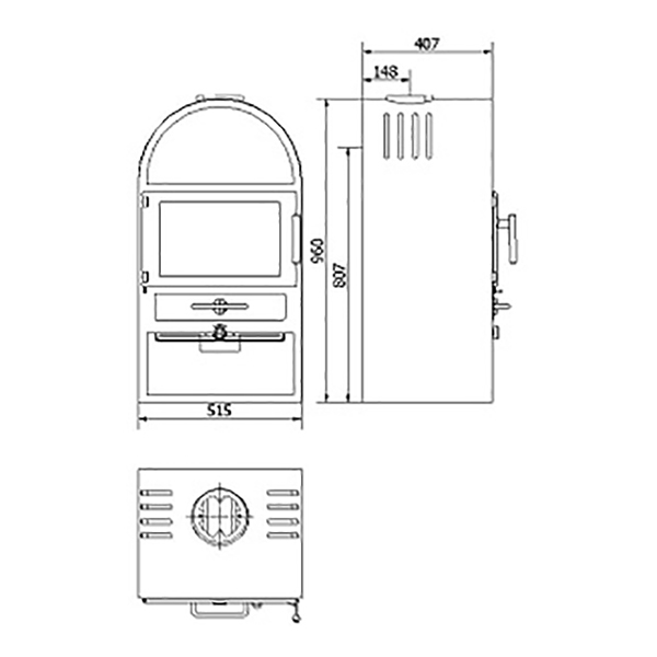 По умолчанию печь имеет верхнее подключение дымохода. При заднем подключении может понадобиться верхняя заглушка к печи. Приобретается отдельно.