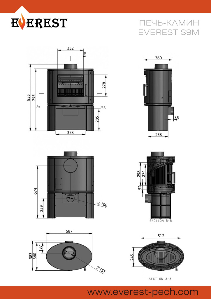Инструкции, чертежи, документы - Печь-камин Везувий Everest S9М