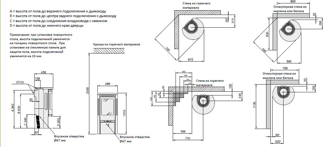 - Диаметр дымохода, мм 150