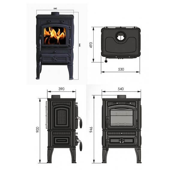 По умолчанию печь имеет верхнее подключение дымохода. При заднем подключении может понадобиться верхняя заглушка к печи. Приобретается отдельно.