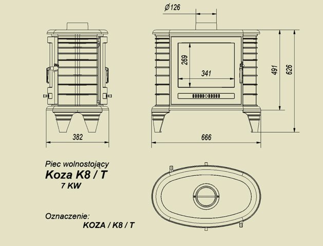 Инструкции, чертежи, документы - Печь камин Kratki Koza K8/T