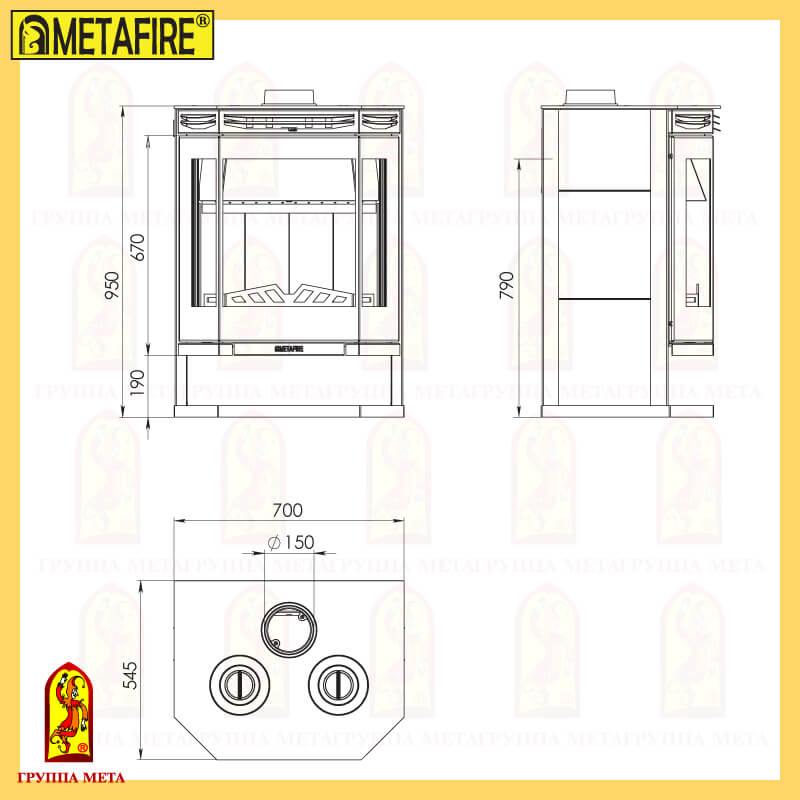 - Диаметр дымохода, мм 150