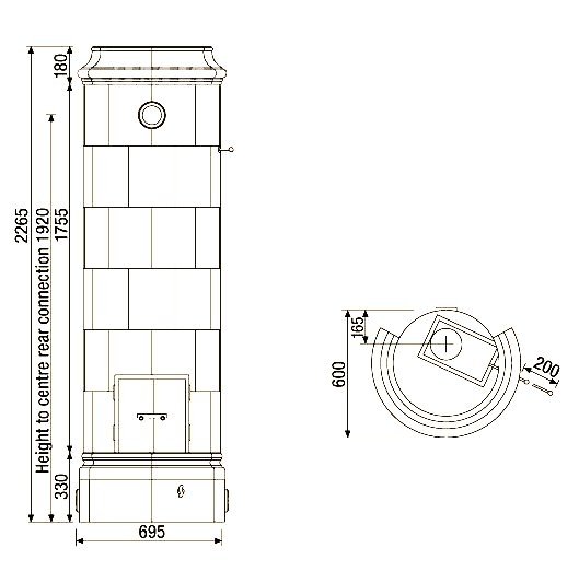 По умолчанию печь имеет верхнее подключение дымохода. При заднем подключении может понадобиться верхняя заглушка к печи. Приобретается отдельно.