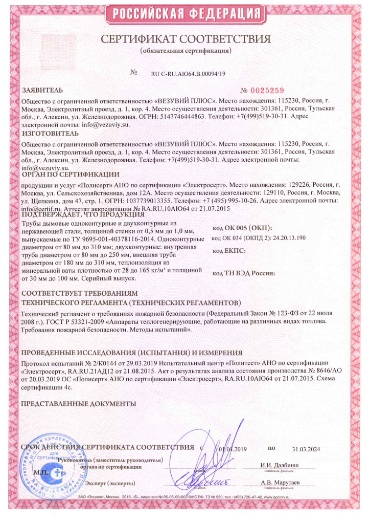 При изготовлении дымоходной системы используется импортное, современное оборудование с соблюдением Европейских стандартов.