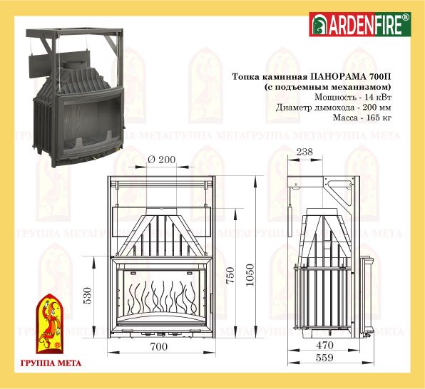 Инструкции, чертежи, документы - Каминная чугунная топка Мета Панорама 700 П