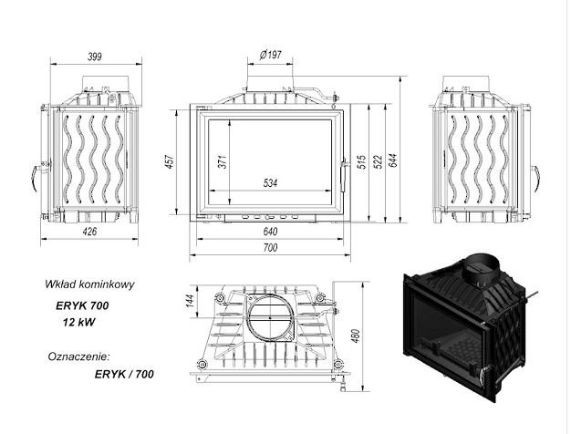 Инструкции, чертежи, документы - Каминная топка Kratki Eryk 700