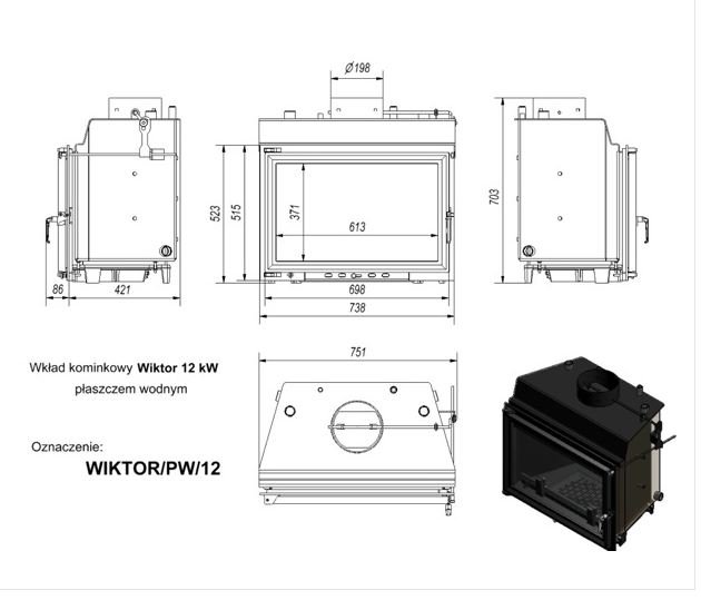 Инструкции, чертежи, документы - Каминная топка Kratki Wiktor/PW/12/W