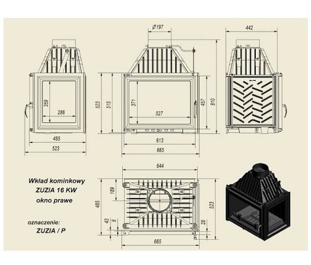 Инструкции, чертежи, документы - Каминная топка Kratki Zuzia/P (стекло справа)