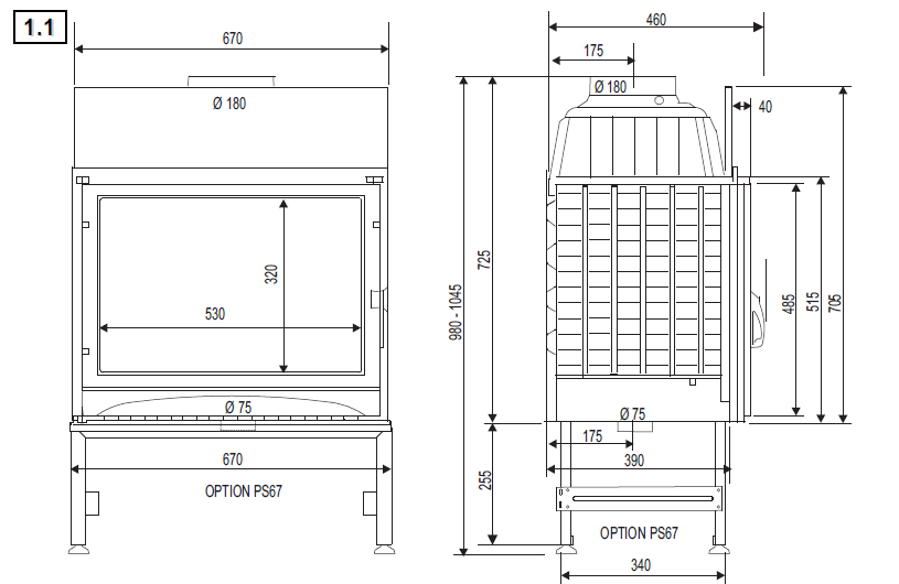 - Диаметр дымохода, мм 180